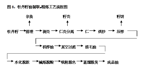牡丹籽油:由牡丹籽提取的植物油是中國(guó)特有的木本堅(jiān)果油,因其營(yíng)養(yǎng)豐富而獨(dú)特,又有醫(yī)療保健作用,被有關(guān)專家稱為“世界上最好的油,”是植物油中的珍品,也是中國(guó)獨(dú)有的健康保健食用油脂。牡丹籽是牡丹植株的精華結(jié)晶,傳承了牡丹本身具有的一切特性外,它更有自己獨(dú)特的醫(yī)藥和營(yíng)養(yǎng)成分,牡丹種子是受果殼和種殼雙層保護(hù)的堅(jiān)果,具有天然的“長(zhǎng)壽”基因。經(jīng)油脂權(quán)威部門江南大學(xué)和中國(guó)糧油質(zhì)量監(jiān)督檢驗(yàn)中心等多家專業(yè)機(jī)構(gòu)測(cè)試表明,牡丹籽油不飽和脂肪酸含量達(dá)90%以上,尤其難能可貴的是其中多不飽和脂肪酸——亞麻酸(屬w—3系列)含量超過40%,是橄欖油的140倍。由牡丹籽提取的植物油是中國(guó)特有的木本堅(jiān)果油,因其營(yíng)養(yǎng)豐富而獨(dú)特,又有醫(yī)療保健作用,被有關(guān)專家稱為“世界上最好的油”。